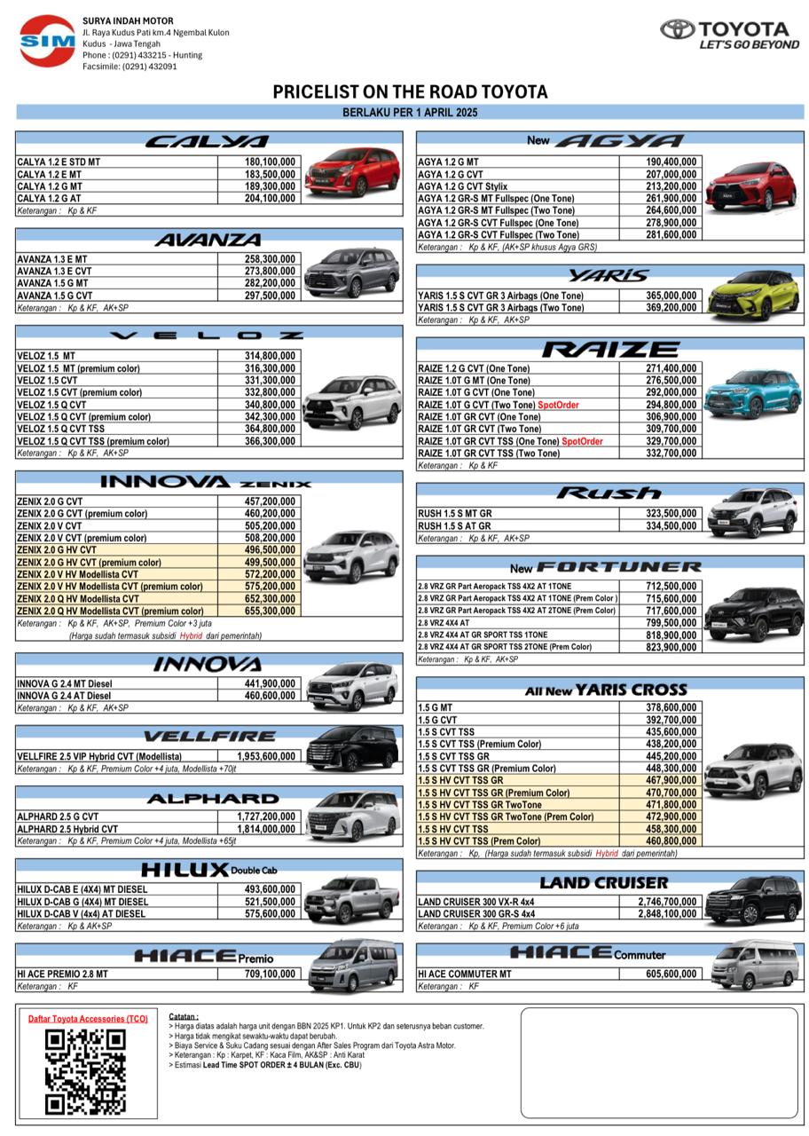 Harga Toyota Terbaru 2025